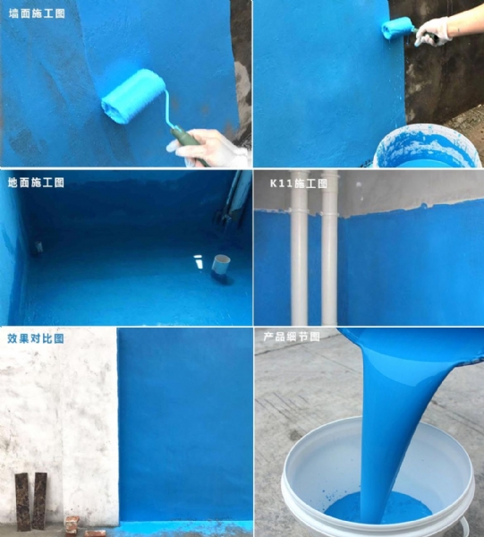 3、可在潮湿基面上施工,无需作砂浆保护层,即可直接粘贴瓷砖等后续工序;集防水和粘结材料于一身,可直接在防水层贴瓷砖或马赛克等保护层。
